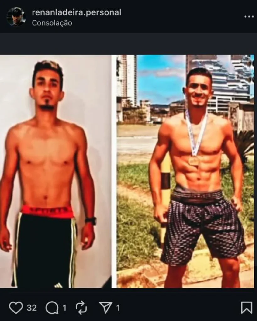“Iniciei meu acompanhamento com o Renan no início deste ano e os resultados têm sido consistentes e evidentes, tanto em termos de composição corporal quanto em desempenho físico. Renan possui sólido conhecimento em fisiologia do exercício, periodização de treinos e prescrição individualizada. Também tem uma abordagem criteriosa em relação à execução dos movimentos, prevenção de lesões e progressão muito de carga. Os treinos são bem estruturados e sempre baseados em meus objetivos que inicialmente eram emagrecimento e agora hipertrofia. Super recomendo para quem busca resultados com segurança e embasamento técnico”